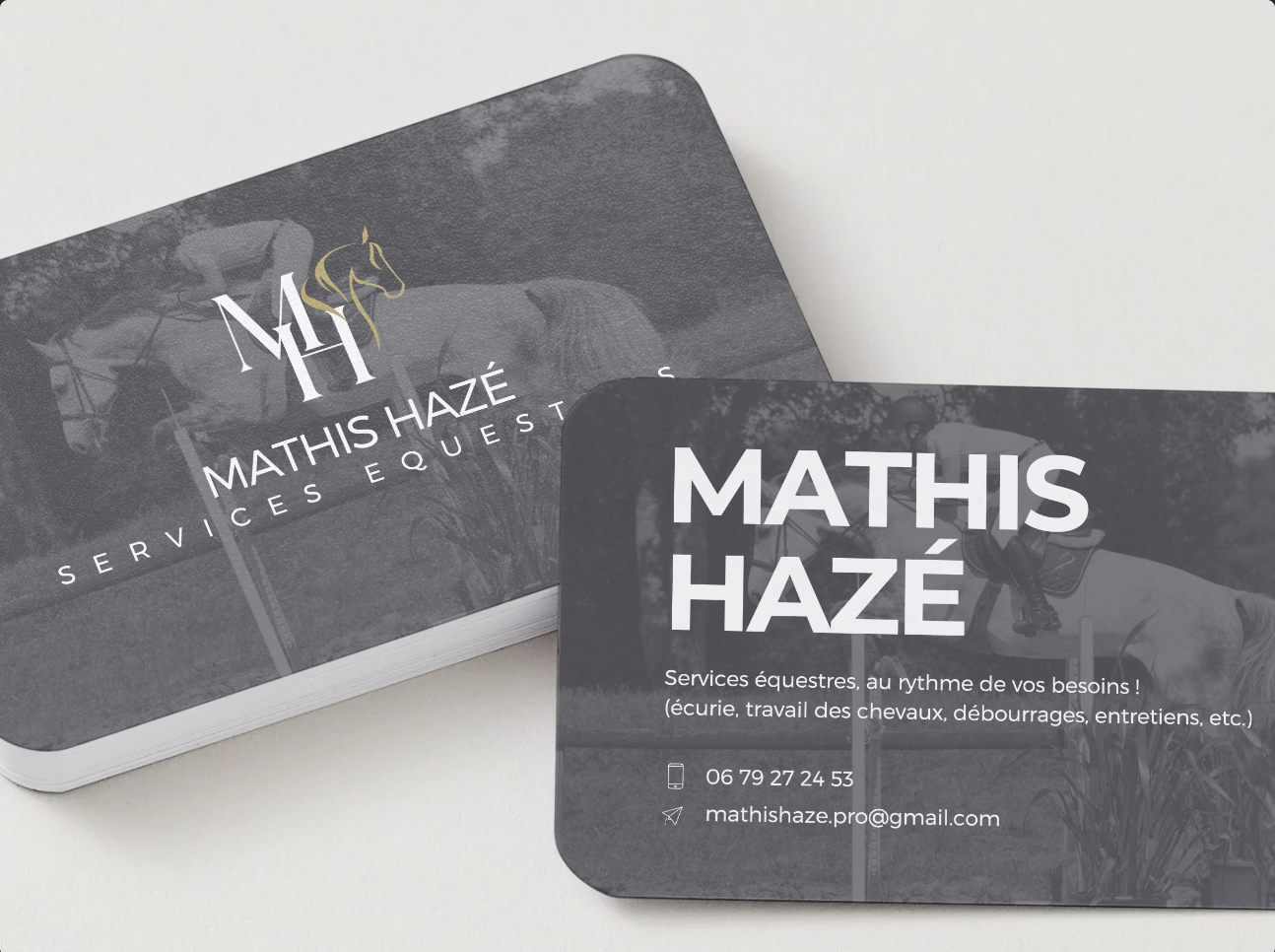 MH Services Equestres est une entreprise spécialisée dans le service de prestation lié aux entreprises du monde équestres. L'entreprise étant nouvelle, elle avait besoin de créer sa propre identité graphique dont son logo et ses cartes de visites. On en a aussi profiter pour créer des modèles de factures, des bannières et une signature mail.